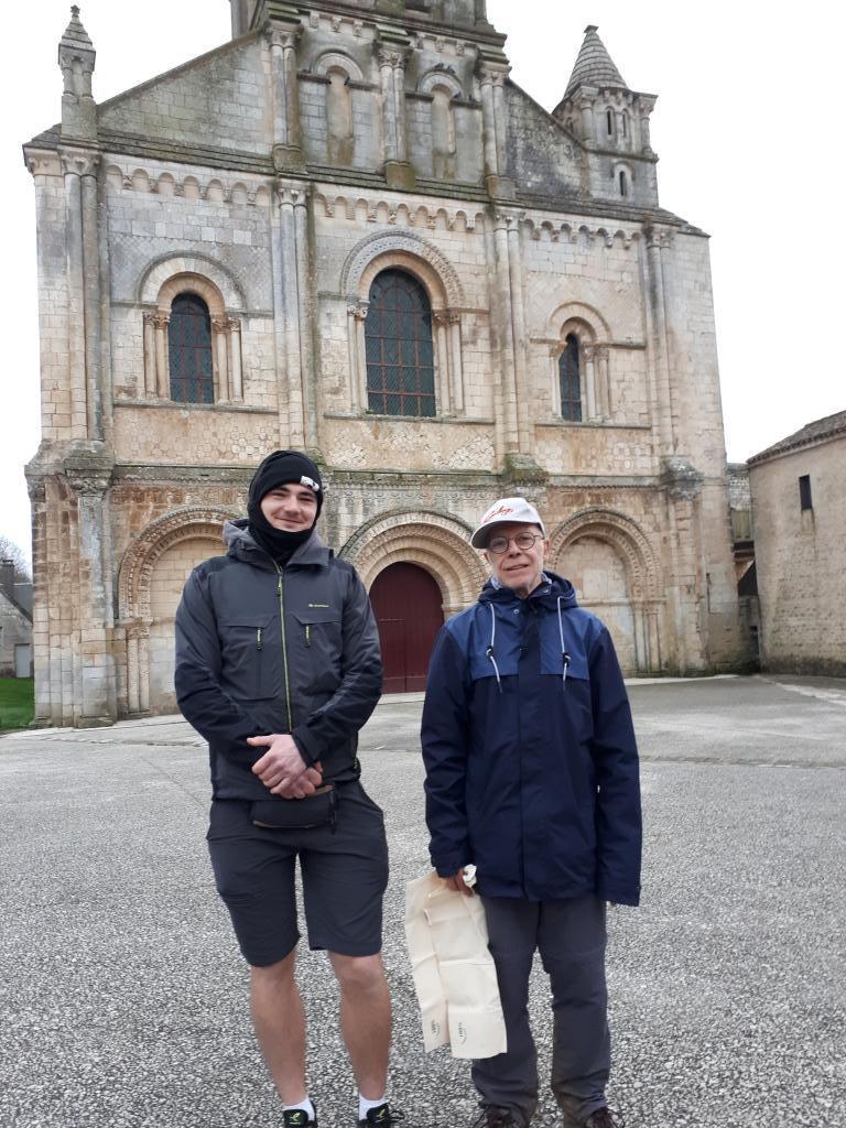 A Mauze sur le Mignon, avec Mael, 40 km après. Si, si, vous avez bien lu, nous avons marché 40 km de 8h30 à 18h30 avec 2 pauses de 15 mn
